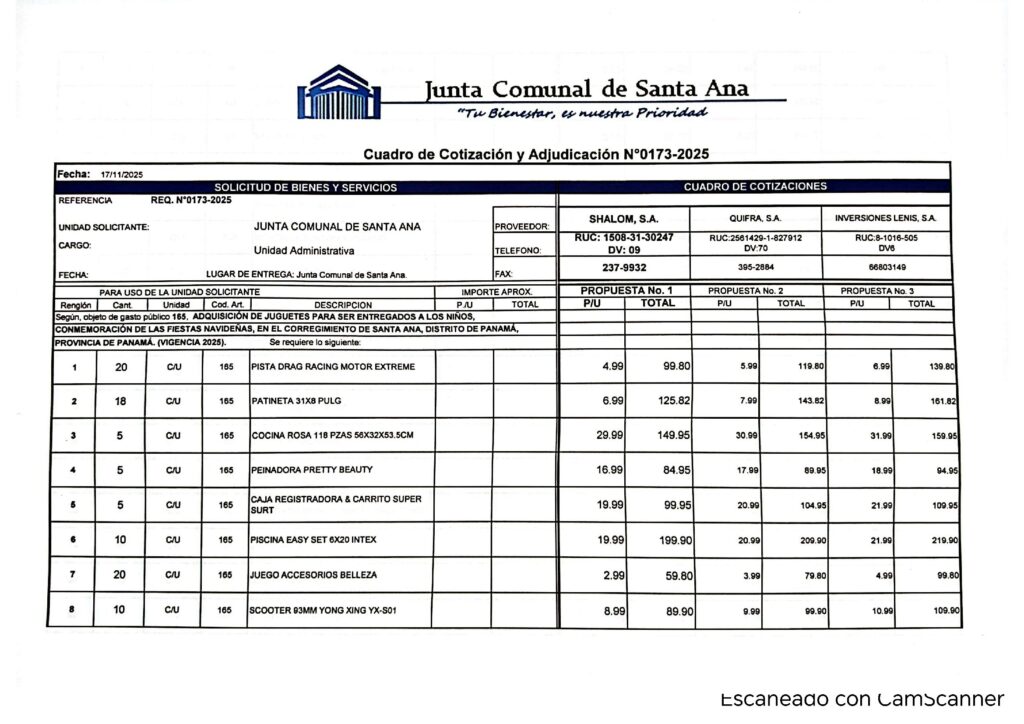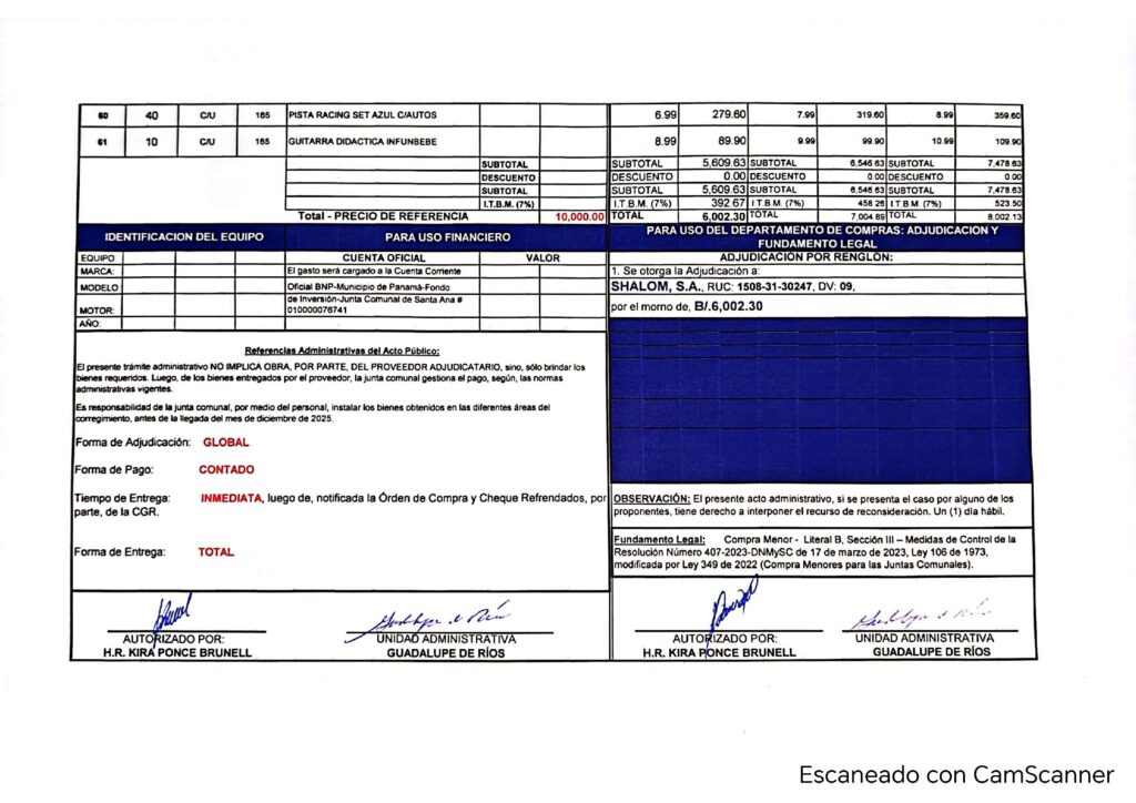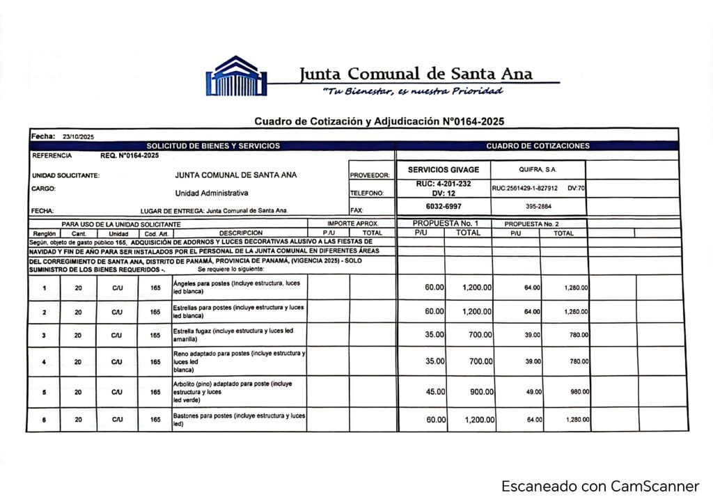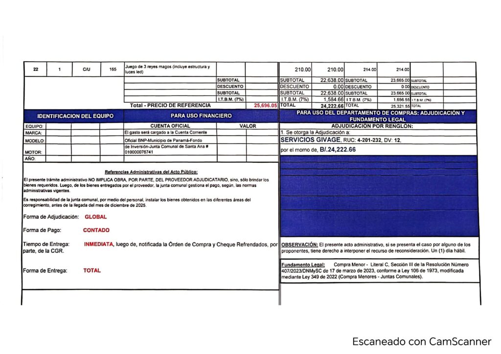 ADJUDICACIÓN NO.029-2025 (B/.5,000.00 - B/.10,000.00) ALQUILER DE MOBILIARIO PARA SER UTILIZADO EN LA SESIÓN ORDINARIA DEL CONSEJO MUNICIPAL DE PANAMÁ A REALIZARSE EN EL CORREGIMIENTO DE SANTA ANA, EN CONMEMORACIÓN DEL ANIVERSARIO DEL CORREGIMIENTO.
