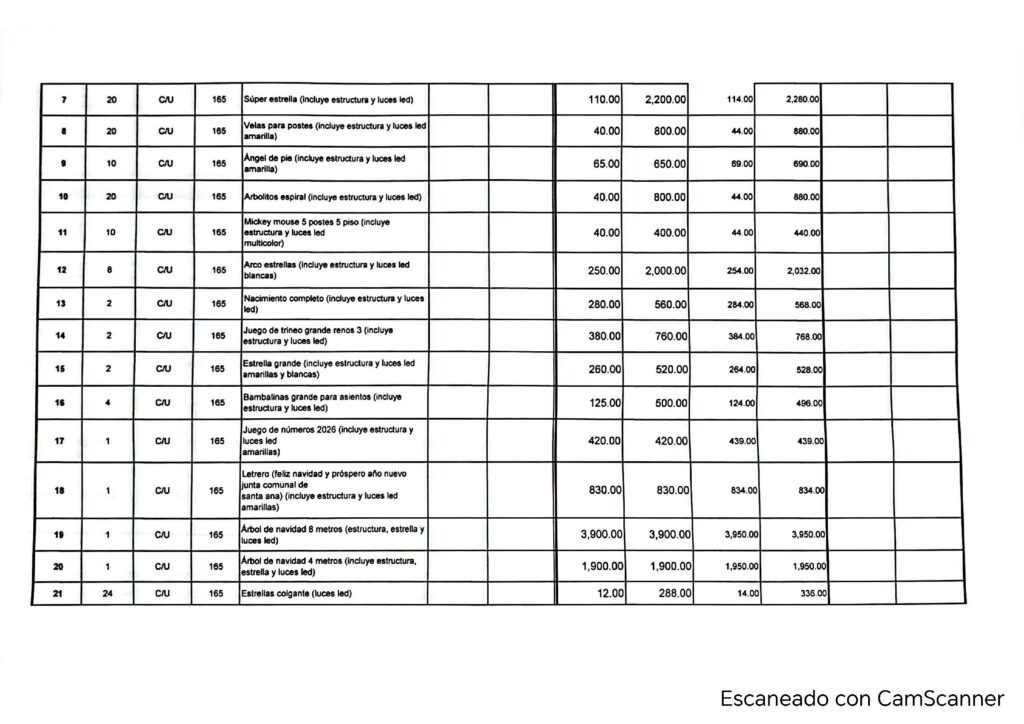 CUADRO DE ADJUDICACIÓN NO.002-20204 MEJORAS A LO INTERNO DE LA JUNTA COMUNAL DE SANTA ANA (SOLO SUMINISTRO DE MATERIALES) -----ADJUDICADO------